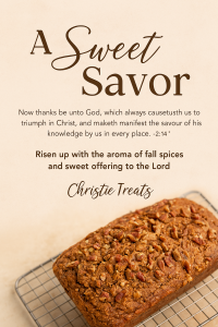 So whether you’re baking, encouraging, creating, or simply showing up for someone today, I pray you’ll feel it too — that sweet savor of Christ in you, rising.